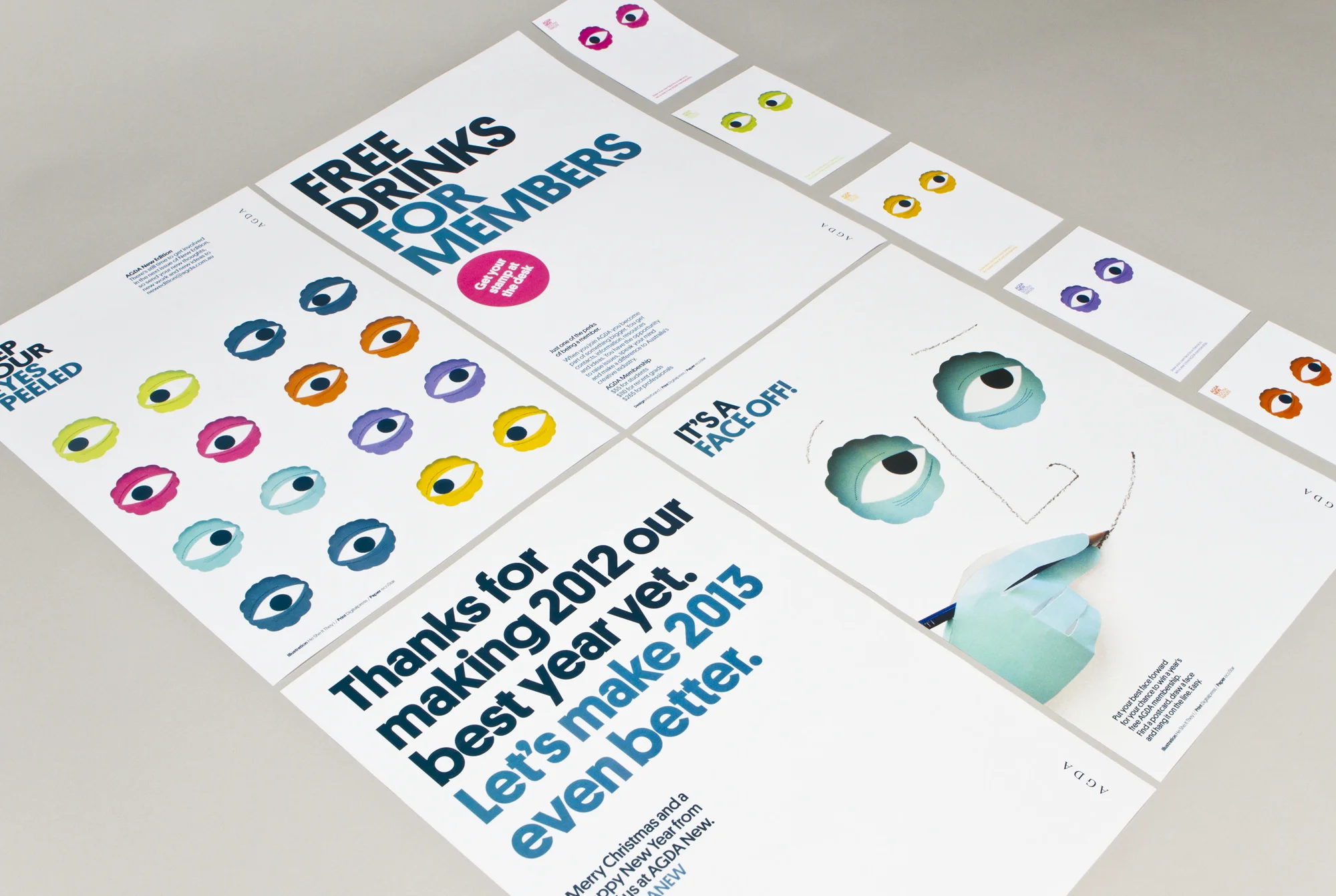 Interbrand Sydney commissioned us to illustrate a promotional poster within AGDAโs (Australian Graphic Design Association) freshly-launched publication New Edition. Playing with the idea of New Faces, our imagery became part of the first editionโs launch party. AGDA even gave attendees the opportunity to win a yearโs free membership, by challenging party-goers with an illustration Face-off.