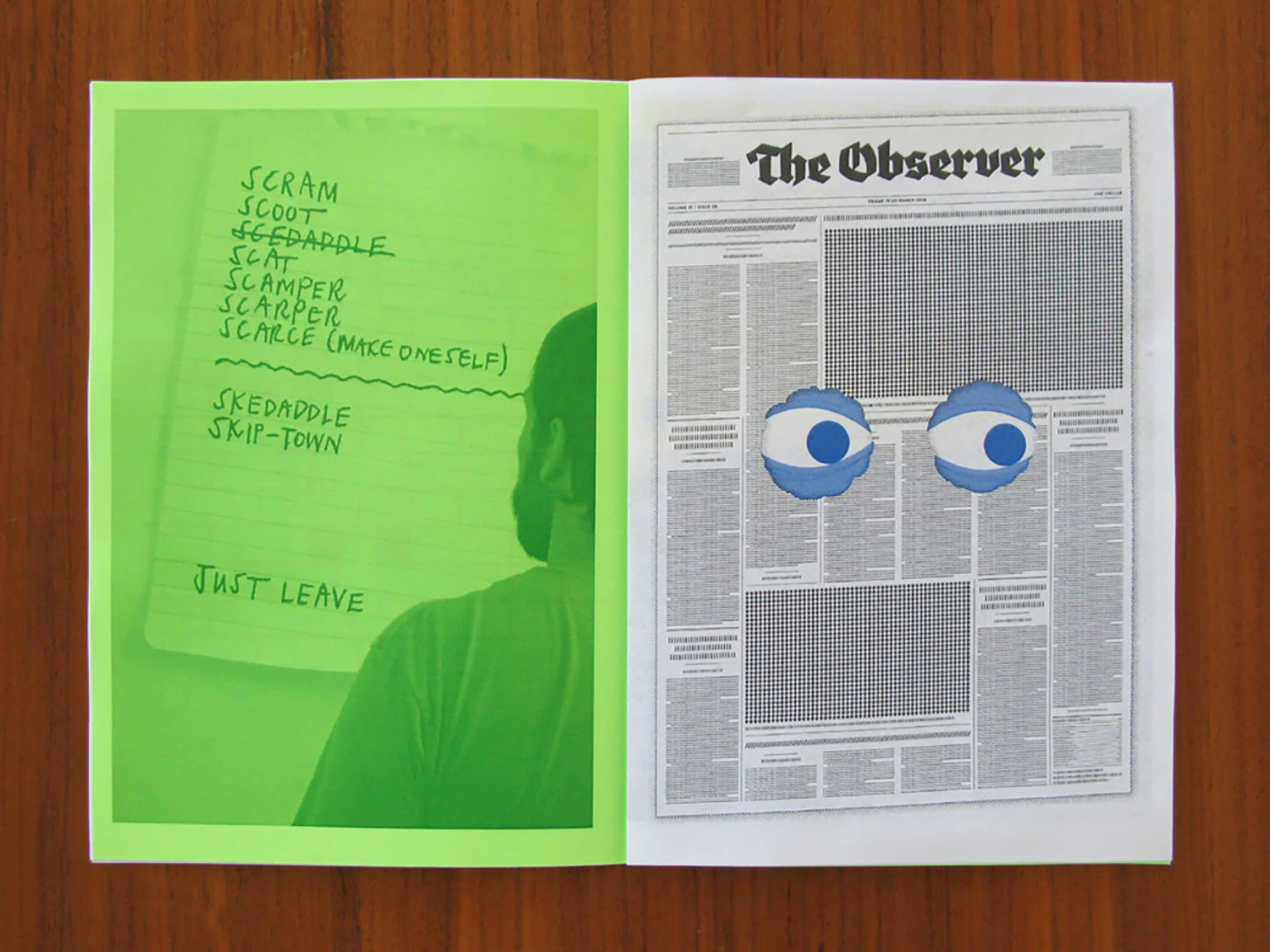 Insides: Full colour on white/green/newsprint stocks / Edition of 100