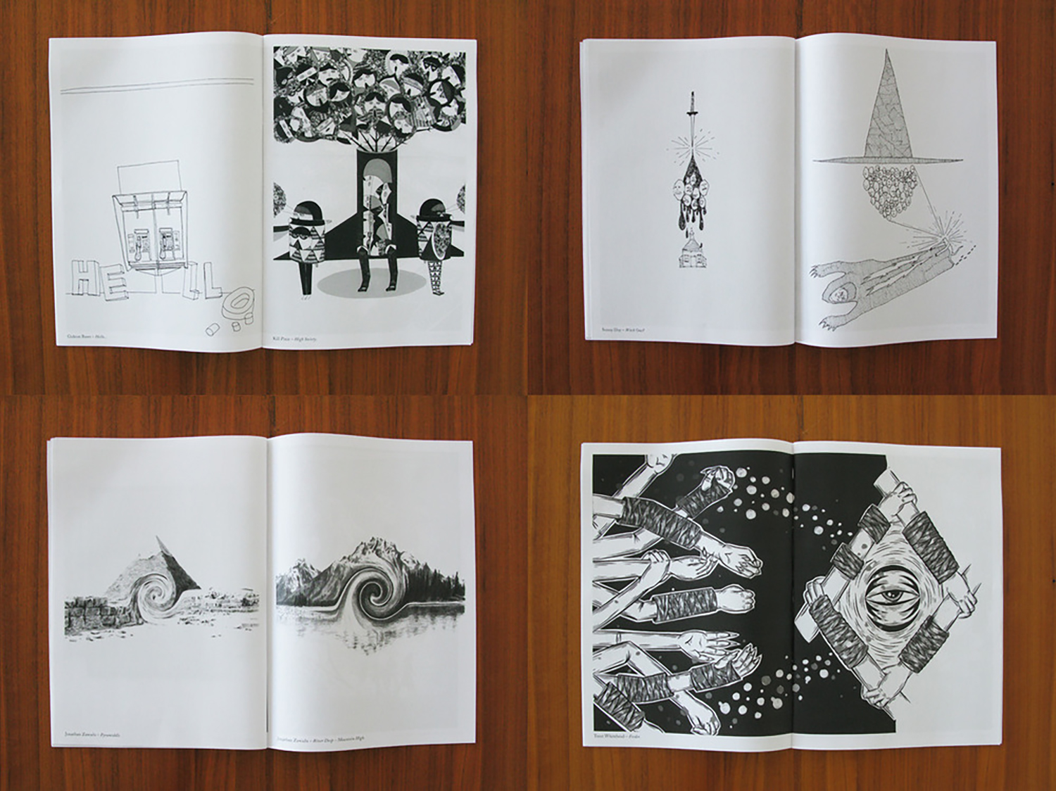 A collaborative zine by partners and pals Dave Ladd (HSITI), Joseph Allen-Shea (Izrock), Mark Drew (Making Ends) and Tristan Ceddia (Never Now). Each artist made four or five double page spreads with the very loose theme of the collective four. All hands on deck——Together Atlas was hand-collated and at Chronic’s place.