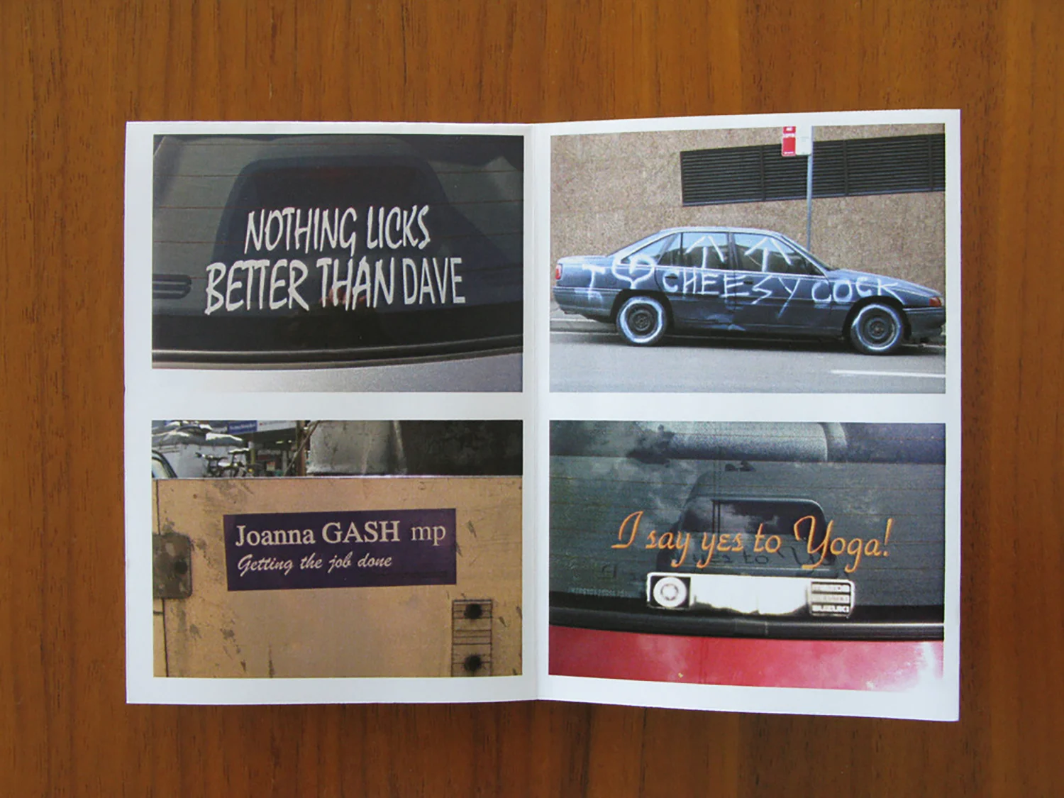 The fourth in a series of photographic zines by Dave, Cartography is a collection of car photos. That’s pretty much it.