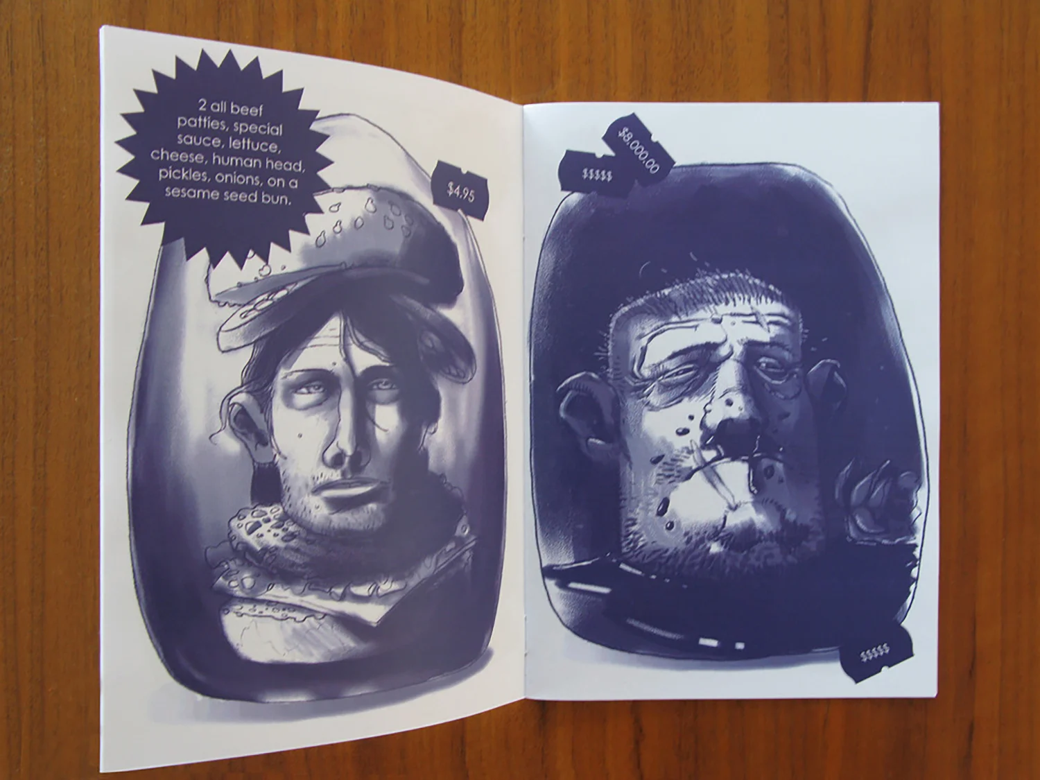 2 all beef patties, special sauce, lettuce, cheese, human head, pickles, onions, on a sesame seed bun. $4.95——No Lay-Buys!! Not now. Not ever.