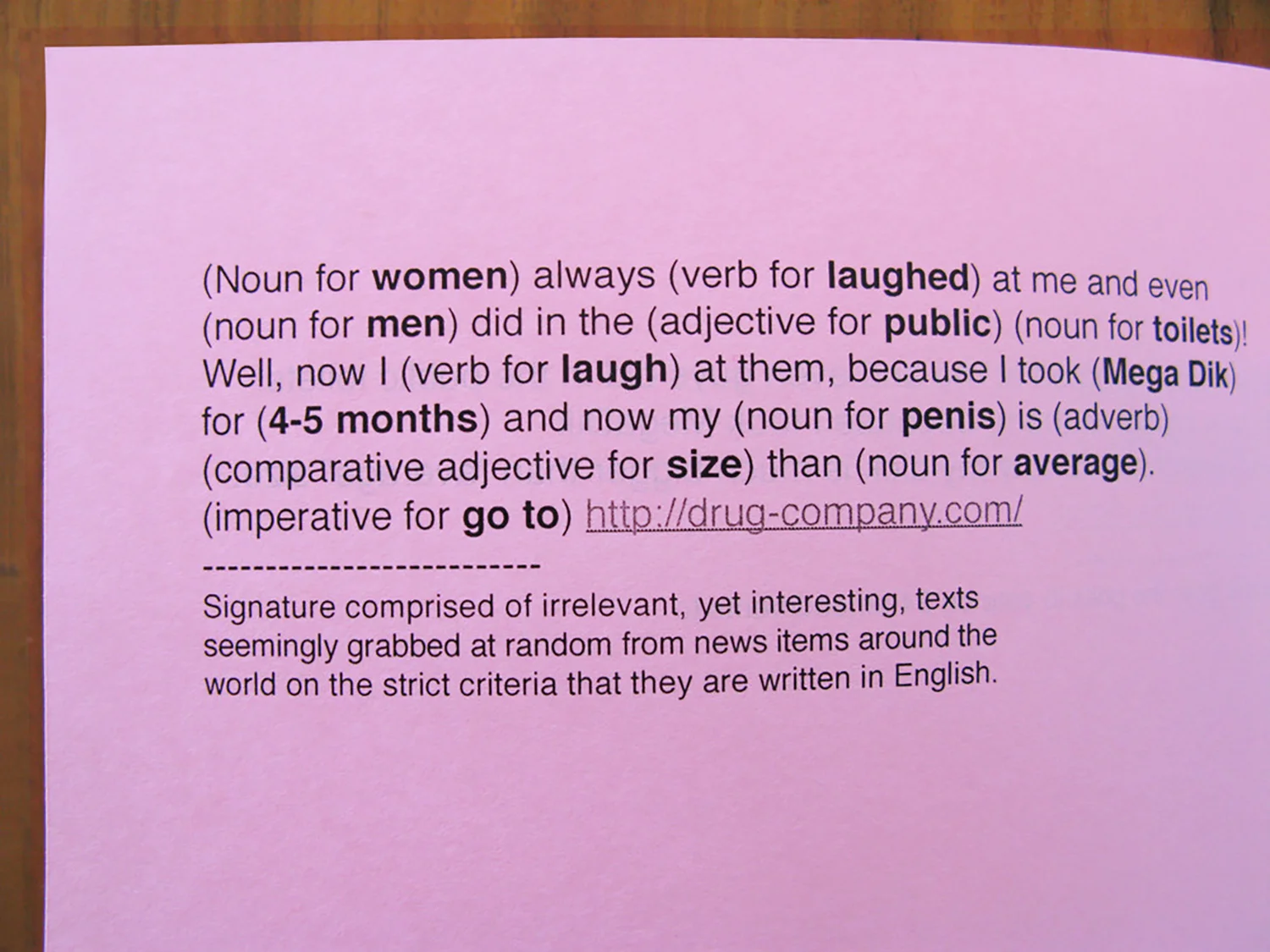 Dave had been receiving polymorphic spam for penis enlargement product Mega Dik for some 2-3 months and now his junk-mail folder is much bigger than “average” size. Over the months, the spam-filter-avoiding iterations became more and more ridiculous. Now let’s all whizgiggle at them.