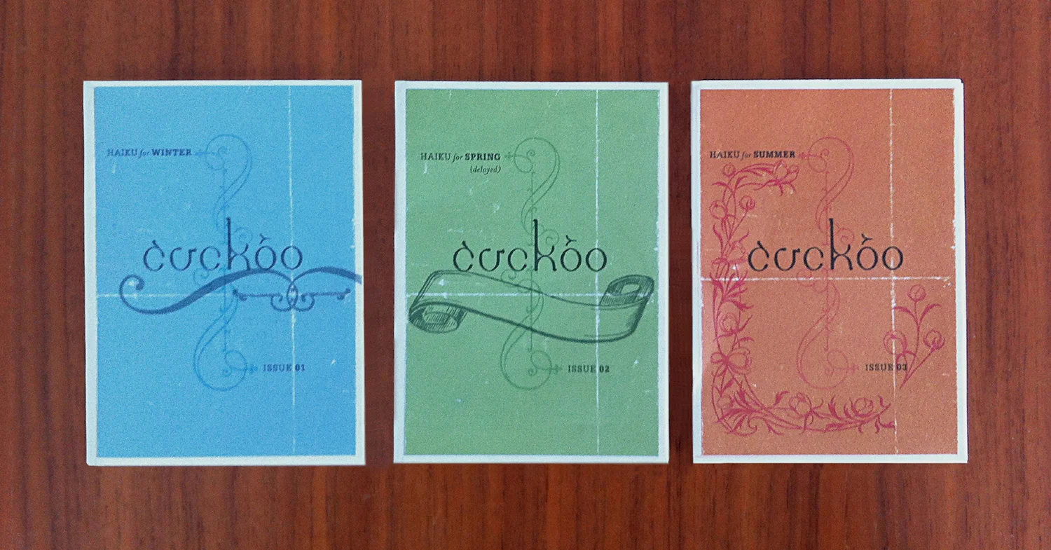 Cuckoo was the first one-shot style zine Dave produced and was a great seasonal project he and two other Grace Emily regulars, Marky and The Doc created. After discovering they all wrote haiku, Cuckoo——Haiku for Winter was born. The following two titles: Spring and Summer were submissions-based with the three friends now editing, as well as contributing content.